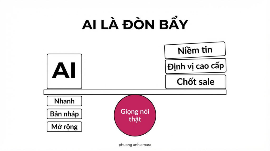 Một thắc mắc lớn của học viên là: “Vậy AI có vai trò gì?”. Trong chiến lược của tôi, chúng ta sử dụng AI như một đòn bẩy:
