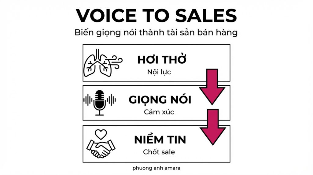 Trong lớp học Voice-to-Sales, tôi đã lắng nghe rất nhiều tâm sự của các học viên. Có người như chị Hằng lo lắng về âm lượng nhỏ và khẩu hình chưa chuẩn. Có chị Hưng trăn trở về giọng địa phương Quảng Nam khó nghe. Hay An Nguyễn, một chuyên viên sale, băn khoăn làm sao để giọng mình linh hoạt – lúc cần chắc chắn để tạo tin tưởng, lúc cần trầm xuống để đồng cảm khi khách hàng gặp sự cố.