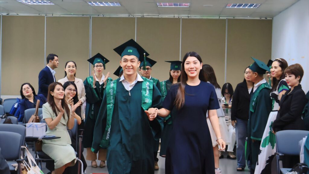 Hôm nay, trong buổi lễ tốt nghiệp khóa đào tạo đại lý của Bộ Tài chính, tôi có vinh dự được dắt tay hai người đồng hành đặc biệt bước lên sân khấu. Họ không phải là những đại lý bình thường. Họ là những chủ doanh nghiệp thành đạt, những người đã tin tưởng tôi với chính tài chính gia đình mình, và giờ đây, quyết định đồng hành cùng tôi trên con đường tư vấn tài chính.